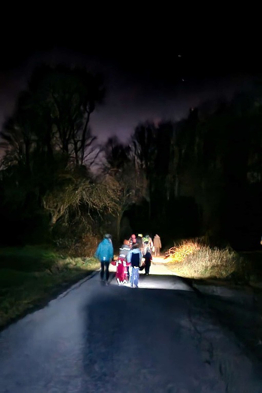 Dreizehn Familien trafen sich am 17.02.24 in Maubach, um gemeinsam eine Nachtwanderung zu unternehmen. Bei der Wanderung erfuhren alle, dass die Fledermaus mit der Nase spricht und mit den Ohren sieht, dass das Hören in der Dämmerung und Dunkelheit sehr wichtig für die nachtaktiven Tiere ist und dass sich auch unsere Augen an die Dunkelheit gewöhnen können. Nach Spielen und Taschenlampen-Suchaktionen wanderten wir bis zum alten Wasserturm von Backnang und genossen dort noch eine wunderbare Aussicht über die Stadt! Zum Abschluss waren wir den Sternen gefühlt so nah, dass wir uns alle noch leckere Sternenkekse von Familie Huber schmecken ließen! Vielen Dank dafür! Es war wieder eine tolle Veranstaltung der Familiengruppe Backnang des Schwäbischen Albvereins! Bis zum nächsten Mal. Text und Foto M. Hozak