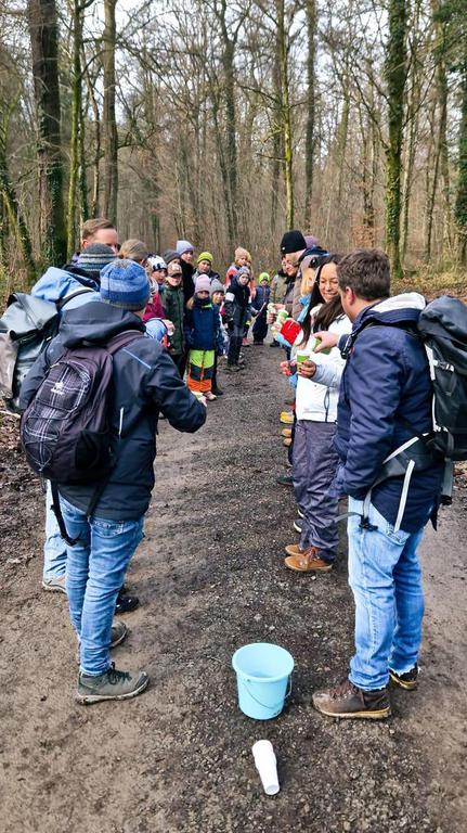 Der Rems-Murr-Kreis hat am Samstag, den 16. März 2024 die Flurputzete ausgerufen und da wollte die Familiengruppe des SAV ihren Teil dazu beitragen. In Kooperation mit aNNa Benzler, Naturparkführerin des Schwäbisch- Fränkischen Waldes, wurde dem wilden Müll rund um das Wildgehege und den Waldfriedhof in Backnang der Kampf angesagt. Insgesamt 10 Erwachsene und 12 Kinder machten sich, trotz trüben Wetteraussichten, gut gelaunt und mit Handschuhen und Zangen ausgestattet auf den Weg. Nach den ersten Metern und ersten Müll - Funden gab's einen kleinen Einblick in die Zersetzungszeit der verschiedenen naturfremden Dinge, die man so findet. Neben Gummibärchen - Verpackung, Taschentücher, Hundekot-Beuteln landeten auch zahlreiche Zigarettenstummel in den blauen Müllsäcken.